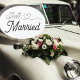 Just Married—fun car magnet. Elegant script font with a cute heart tale. Simple and sweet black lettering. Order one for all sides of your car and let people know you just got married!