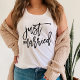 Set off on your honeymoon with our super cute bride tank featuring "Just Married" on the front in black handwritten style brush marker typography lettering. Personalize the back with your choice of text -- we love it with "The New Mrs" and your new last name.