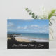 Just Married photo card is shown with a photo print of a beautiful beach in Hawaii with a black accent with text, customize this card and change the photo to yours, change the text to yours, you can even put a message on the back.
