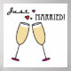 Wedding gifts for the bride and groom. champagne toast with hearts on just married home goods, accessories, jewelry, ornaments and wedding keepsakes.