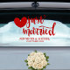 Personalize the design with the names of the newlyweds and the wedding date to create a unique keepsake for your big day. The stylish typography stands out beautifully on car windows, making it perfect for photos and for announcing your newlywed status as you drive away.