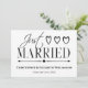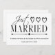Congratulations to the happy couple who just got married. With this black and white just married card you can announce your marriage to family and friends. Includes a text box to write a note of explanation on the back of this wedding card. Simple modern elegance typography at it's best.