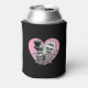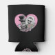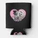 Bride and groom skulls are all dressed in their wedding finest and set on a pink heart with JUST MARRIED! text.
