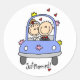 The new husband and wife ride off to their honeymoon on our Just Married stick figure bride and groom design that you can customize on the spot! Great for a wedding gift!