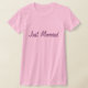 I purchased this shirt and a matching men's one for my grandaughter and her fiance. They were both thrilled and wore them immediately. The quality of the shirts was good and the design was bold and easily seen. I would recommend these shirts to newly engaged couples. The design was colorful, bold, and easily read