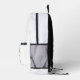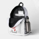 This backpack features a "Just Married!" design with a continuous line drawing of two red swirly hearts (with shadow) linked together.
