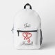Just Married Two Linked Swirly Red Hearts Printed Backpack