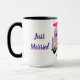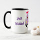 "Just Married" Two Tone Designer Coffee Mug is one of a kind. Check out our myriad of other "Just Married" Designer Gift products like matching Greeting Cards, Tees, Shoulder Totes, Stationery, and matching Envelopes for your special occasion or special event in our MailBoxGreetingCards Zazzle store. All products sold separately. Have fun looking and buying!