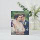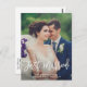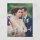 A trendy photo design with white typography brush script and a lovely wedding photo.