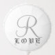 Just Married Bride and Groom Balloons with white, silver, dark gray, black text to coordinate any wedding theme. Celebrate the newly married couple with elegant wedding balloons. Lovely for vases or reception table tops. Air-filled balloons have the front wording, Cheers to the New Bride and Groom. Together in Love. Just Married. Personalize couples Names and Date of Wedding. Back of balloon has monogrammed groom's last name initial with Love written below it with XO in a circle outlining balloon. Helium balloons will only show the front balloon wording. Visit my store for matching Elegant White Black and Formal Black White Wedding Suites. Original wedding template design © TamiraZDesigns.