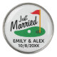 Mark your special day on and off the course with this Just Married golf ball marker! Featuring a playful golf green and flag design, this unique keepsake can be personalized with your names and wedding date. A perfect wedding favor, gift for newlyweds, or fun accessory for golf-loving couples.