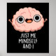 Just Me Mindself And I Funny Brain Pun features a cute brain. Perfect pun gift for family and friends who love cute brain mind puns.