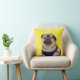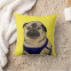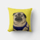 A cute illustrated pillow depicting a pug named Arnold from the book "Just Me" by Ian M. Snyder