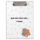 A cute and funny cat-themed clipboard featuring the phrase “Just one more cat… I swear”.