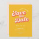 A wedding save the date with a custom photo and peach colored retro style typography is a unique and stylish way to announce your upcoming nuptials to your friends and family. The peach vintage style font adds a touch of retro and whimsy. This design is sure to impress and get everyone excited for your big day.