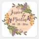 A joyful stickers in a peach color with white polka dots, orange and taupe flowers and foliage. (<a href='https://www.freepik.com/free-vector/collection-of-beautiful-floral-wedding-labels_1695810.htm'>Designed by Freepik</a>). <br/><br/>The sticker is easy to customize with your wording, font and font color.<br/><br/>Not exactly what you're looking for? All our products can be custom designed to meet your needs at no extra charge.<br/><br/>Simply contact us at askcottonlamb@gmail.com<br/><br/>Coordinating products available: