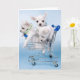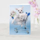 three chihuahua pups in shopping car