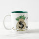 2 money bags on this mug with the black words reading "Just Show Me The Money" printed in between the bags. Dark green inside the mug