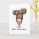 Just, sometimes you feel frustrated by this stressful world. Funny messy bun woman with sad stressed face. Quote inside, "Don't worry darling, things will get better."