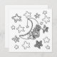 Color me card with stars and moon covered in flowers.