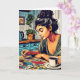 A cute card to send to a friend or family member. Just wondering how you are, let's catch up greeting card. Ai illustration of a woman doing a puzzle on her kitchen table.