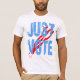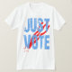Just vote! Blue distressed lettering, red stripes and a white star. Very patriotic, very eye catching, very important. The message is the important thing here, we want everyone to vote!