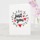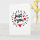 This card features the words “just you” in black, flowing handwritten-style letters placed right in the center of a white background. Around the phrase, a circle of short black lines spreads outward like rays, making the message feel extra focused and important. Three small red hearts are scattered around the text, adding a sweet pop of color and a clear love note ❤️. The simple black-and-white look keeps your attention on the words, while the red hearts bring in warmth and romance. It feels like a direct way to tell someone they’re the one on your mind, without needing a long message. The lettering looks casual and sincere, like something you’d write in a note to someone you care about 🥰. It’s also a nice choice for a close friend or partner when you want to keep things honest and straightforward.