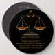 A great Law Firm marketing tool and/or Name Tag for the next Company Retreat is this pin-on button w/ original digital painting of golden scales on black gloss background Benjamin Disraeli's iconic quote, "Truth is Justice in Action". Choice of size & shape. No need to have same name on all to qualify for Volume Discounts.