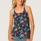 Women's All-Over Print Racerback Tank Top, Black Piping, S