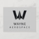 Check out the Wayne Aerospace company logo from the Justice League movie. This logo features a giant W in a simplified form of a flying vehicle, while "Wayne Aerospace" is written below.