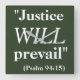 This is a cool hunter green color square-shaped wall clock that says 'Justice WILL prevail (Psalm 94:15)' printed in big white letters. It will make a great encouraging Christmas gift idea for someone praying for favorable results in a complicated legal matter.