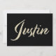 A personalized, beautiful and noble card / greeting card / gift card / birthday card in the handwriting liquid white gold design for Justin. Perfect also for occasions such as birthday or name day. The back is free for a personal text or similar.