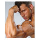 Color photo of bodybuilder and fitness expert Justin Woltering flexing his bicep.