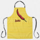 A red jwala chili pepper, also known as an Indian hot finger pepper, is decorated with patterns inspired by Indian mehndi and sits on a yellow background with a smaller version of the same pattern and a script label in the corner. This moderately spicy pepper is used to add heat to authentic curries and other Indian cuisine.