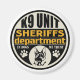 Black K9 logo with large K9 Unit Sheriffs Department text. Lower 'In Dogs We Trust' and two dog paw shapes next to a K9 German Shepard dog head. Off white, gold and black colors, great K9 Unit gift for handlers, sheriff departments and supporters!
