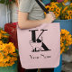 K Monogram Cat Lover Blush Pink And Black Tote Bag