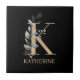 K Monogram Floral Personalized Ceramic Tile