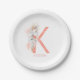 K Monogram Name Pampas Grass White Orchids Paper Plates