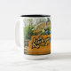 If you visit Voyageurs National Park and come fishing at Kabetogama Lake you will see the Walleye Statue greet you across from Gateway Store. Thus, the Kabetogama Lake Walleye Two-Tone Mug.