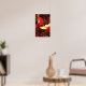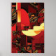 Kaffee Restaurant Poster. A red decor design with lighting arrangement and stairs. You will find glasses in this abstract.