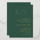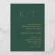 Elegant wedding invitation featuring a chic and contemporary design with a minimal layout. At the top is your monogram in a large bold format and below are your event details in right alignment for a modern touch. The back has a template for additional details and you may delete the text in that field if you prefer to leave the back blank. The color palette is hunter green with your details in real foil, making this invitation great for a fall / autumn or winter wedding but may be updated to any colors you choose in the design editing tool.