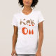 The material is a great quality that is hard to find with most tee shirts. Fabric was not see-through or thin at all, but was also very soft and comfortable. The shirt description states that it runs a little small, so I sized up one size for a perfect fit! I would definitely buy this type of tee shirt again because I love the fit and high quality fabric that I cannot find anywhere else. The printing was perfect and just as pictured. Loved the cute quote and really enjoy the tee in both the quality and design. I love quirky typography designs and funny quotes and I am extremely pleased with the overall quality and value I get at Zazzle!