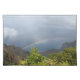 This place mat features a photograph of a beautiful rainbow in the clouds taken from Kalalau Lookout on the tropical Na Pali Coast on the island of Kauai.