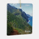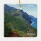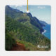 Square ceramic ornament with an image, on both sides, of a section of the Kalalau Trail along Kauai's hauntingly beautiful Na Pali Coast. The trail runs approximately 11 miles along the island's north shore from Keʻe Beach to the Kalalau Valley. See the entire Hawaii Ornament collection in the HOME section.