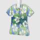 Royal blue, ocean blue, cornflower, palm and lime greens colorway. Whimsical hibiscus and plumeria flowers dance on top of tonal palm leaves on a striped tie-dyed blend of colors. This design was inspired by the Aloha shirts and tropical designs for the seventies and flower power. This design comes in several color ways.