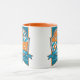 Kaleb name meaning shield orange blue teal mug. Royal crown knights style crest shield monogram letter K art name mug perfect for kids and teens in shades of orange, teal blue, and gray. Personalize with your own name beginning with K and name meaning or a message or subject for a personalized touch. Reads Kaleb Devoted dog Loyal, faithful and courageous. Other names available on mugs and other matching products. Unique royal style crest drawing, featuring a wolf / dogs head, crown, star and initial K monogram letter, graphic art and design by Sarah Trett www.sarahtrett.com for www.mylittleeden.com