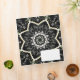 Kaleidoscope as a white star, framed by a delicate white pattern on a black background...
