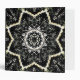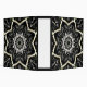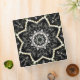 Kaleidoscope as a white star, framed by a delicate white pattern on a black background...
