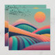 An abstract landscape of rolling hills in bright vibrant colors with bold textures and a flock of birds in the sky.