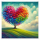 This enchanting image features a vibrant tree with leaves composed of heart shapes in a rainbow of colors, symbolizing the diversity and unity of love. Set against a whimsical backdrop of swirl-patterned skies, the heart leaves transition through a spectrum from cool blues to warm reds, creating a visual representation of a love that grows and changes. This artwork brings a touch of romance and color to any space, making it perfect for gifts or decor that celebrates love in all its forms